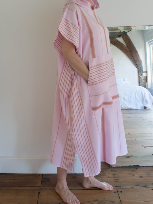 Hamam tunika hupullinen Raita vaaleanpunainen-ruskea
