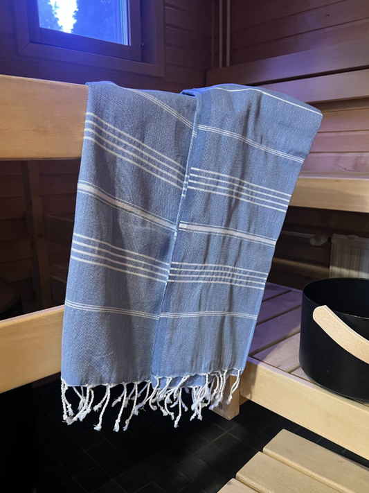Kreikkalainen pyyhe Dyyni farkunsininen puuvilla 100x180cm