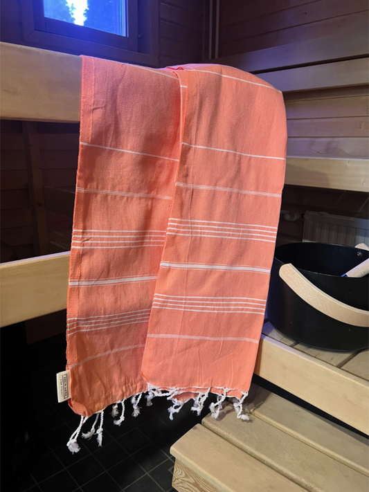 Kreikkalainen pyyhe Dyyni koralli puuvilla 100x180cm