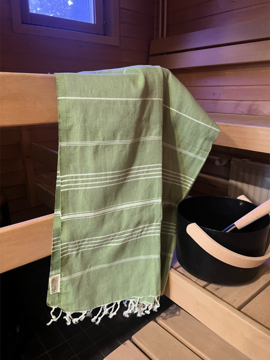 Kreikkalainen pyyhe Dyyni oliivi puuvilla 100x180cm