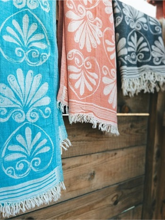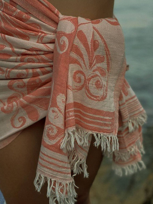 Kreikkalainen pyyhe Lootuskukka koralli puuvilla 90x180cm