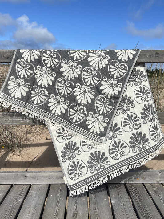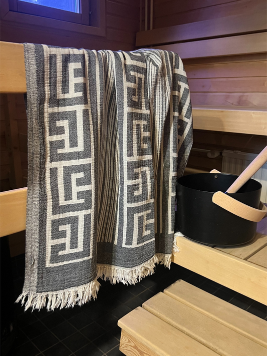 Kreikkalainen pyyhe Ornamentti musta puuvilla 100x180cm