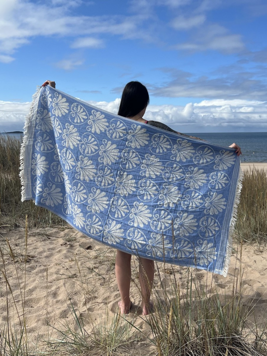 Kreikkalainen pyyhe Lootuskukka sininen puuvilla 90x180cm