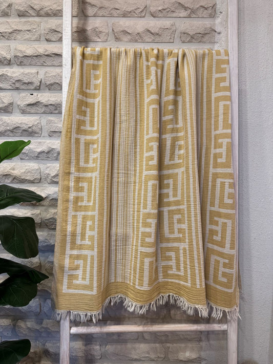 Kreikkalainen pyyhe Ornamentti kulta puuvilla 100x180cm