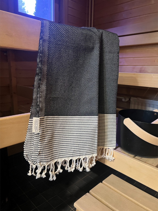 Kreikkalainen pyyhe Timantti musta puuvilla 100x180cm