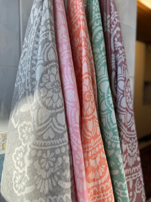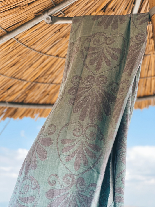 Kreikkalainen pyyhe Lootuskukka harmaa-eukalyptus puuvilla 90x180cm