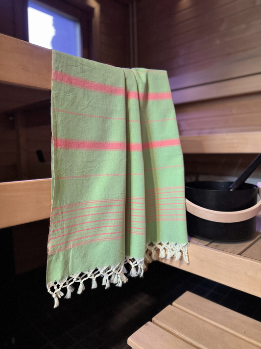 Hamam pyyhe Raita vaaleanvihreä-pinkki puuvilla 100x170cm