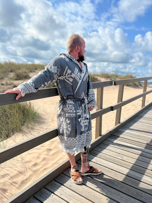 Kreikkalainen hupullinen kylpytakki Ornamentti tummanharmaa