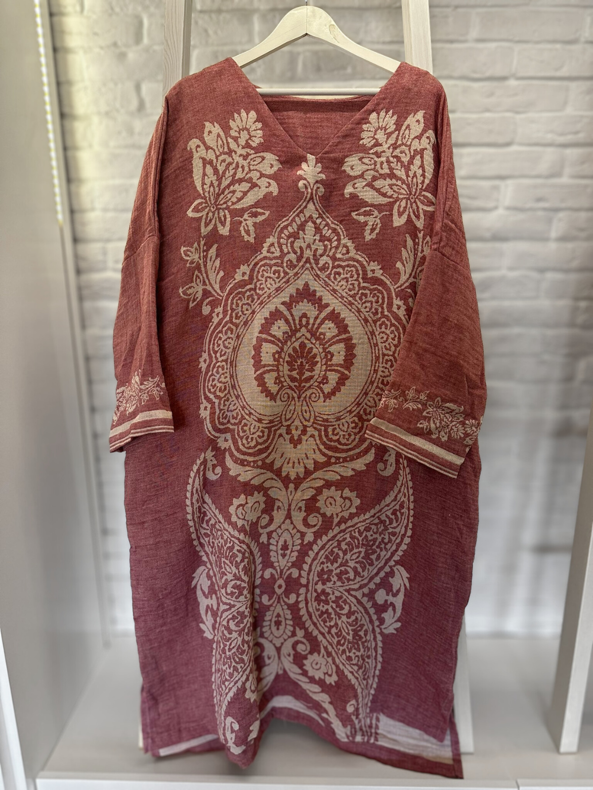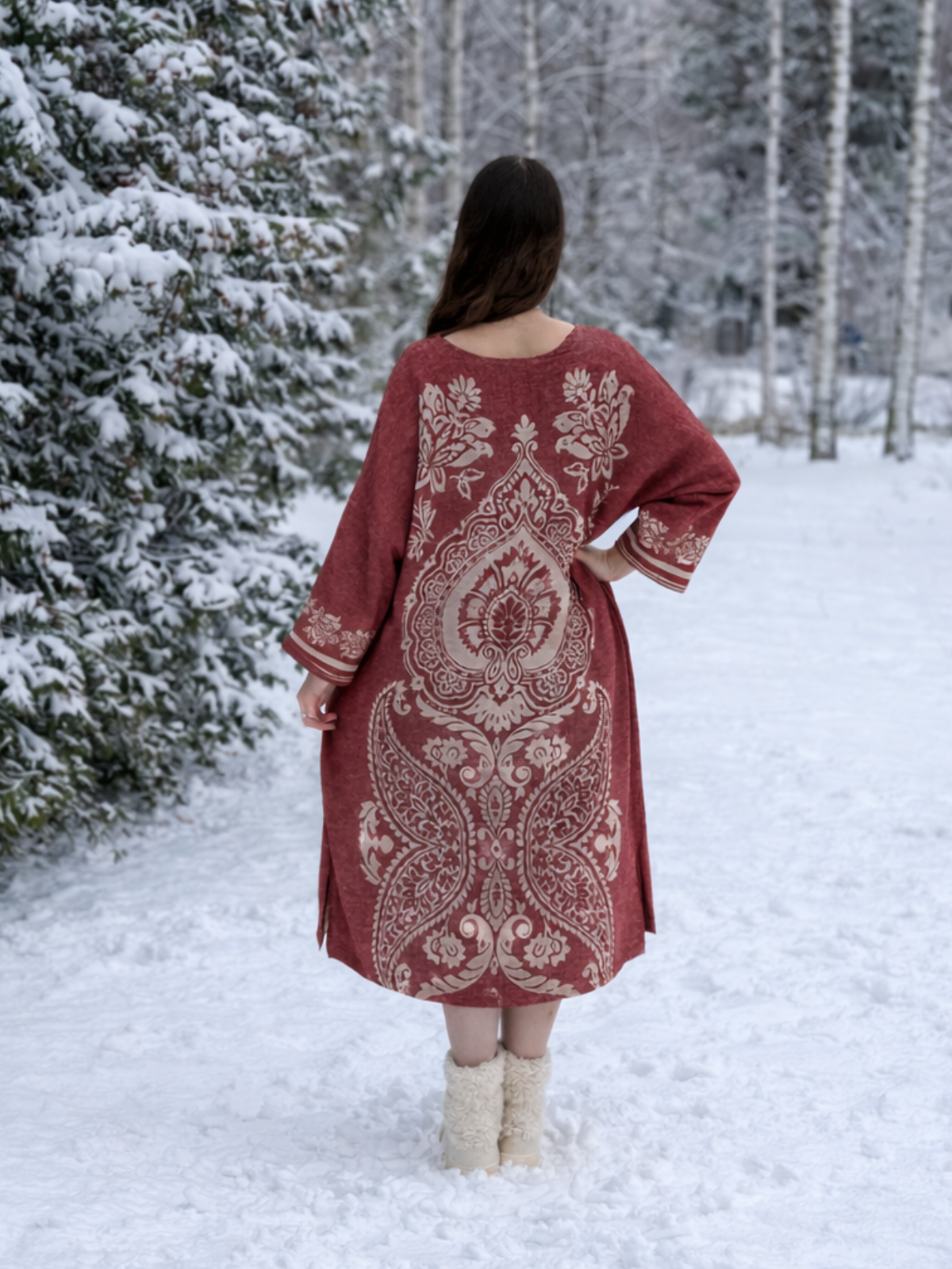 Väri: Burgundinpunainen pohja, luonnonvalkoinen kuviointi