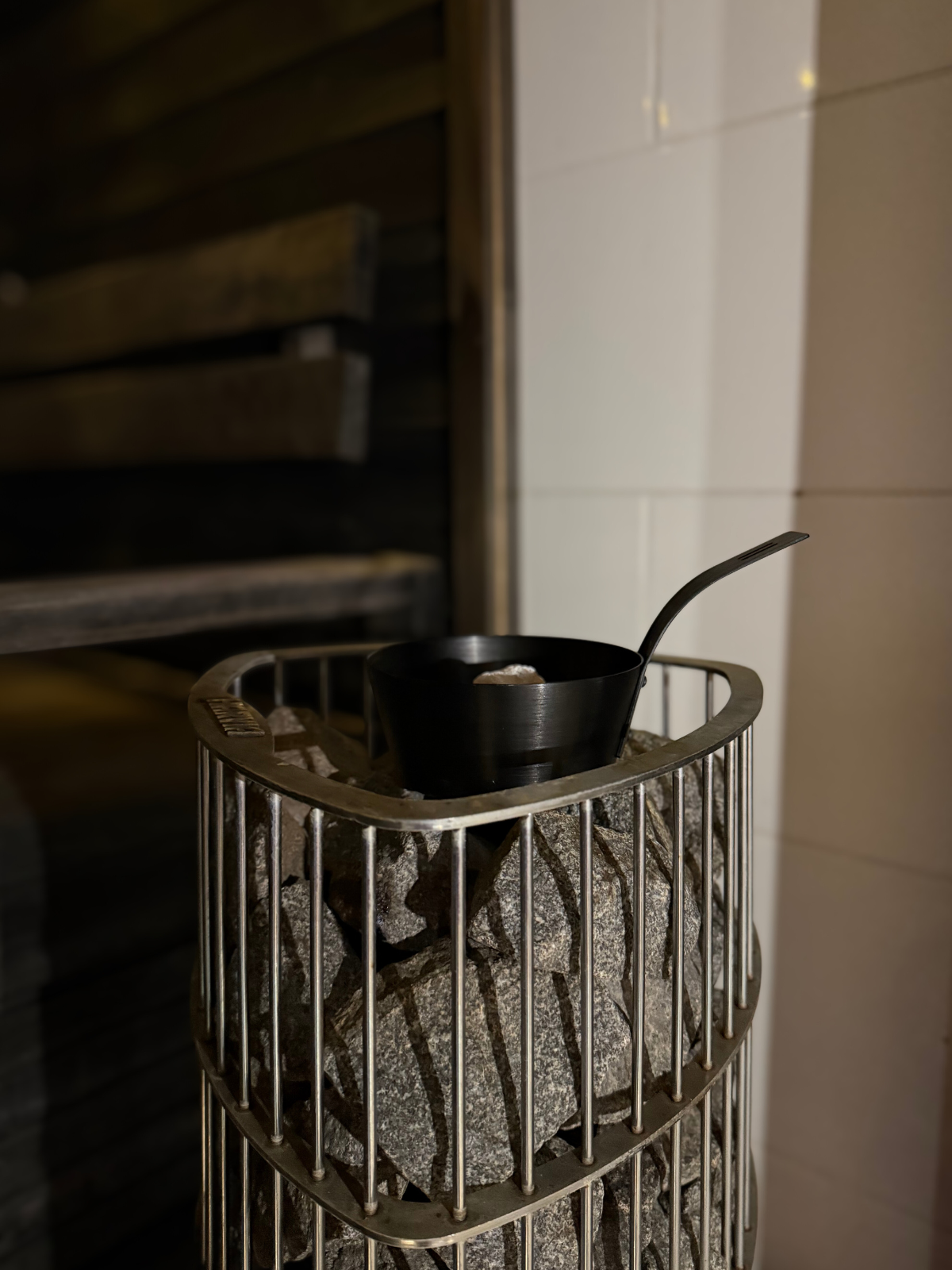 1. Aseta kuppi kylmän kiukaan kivien päälle.