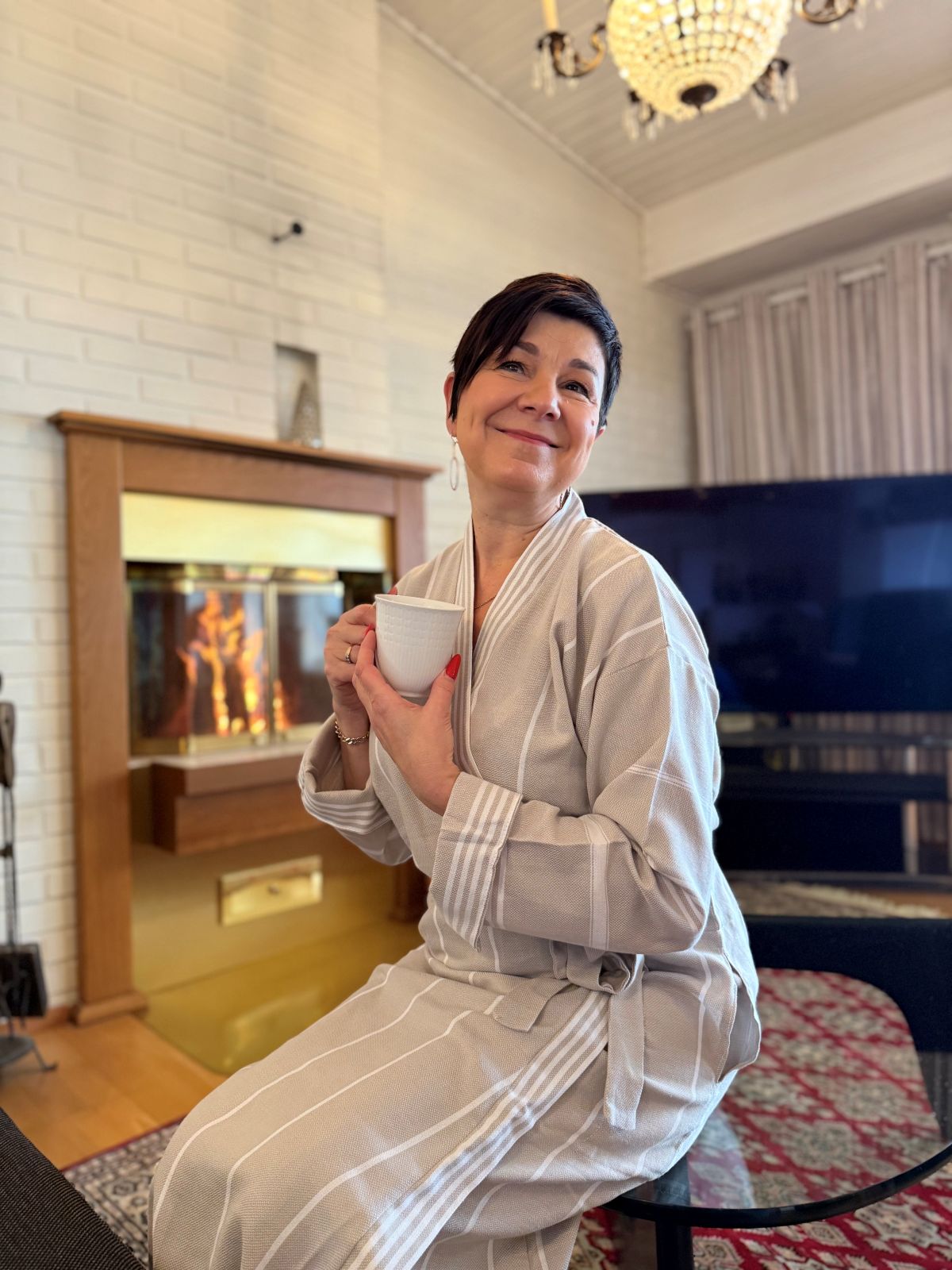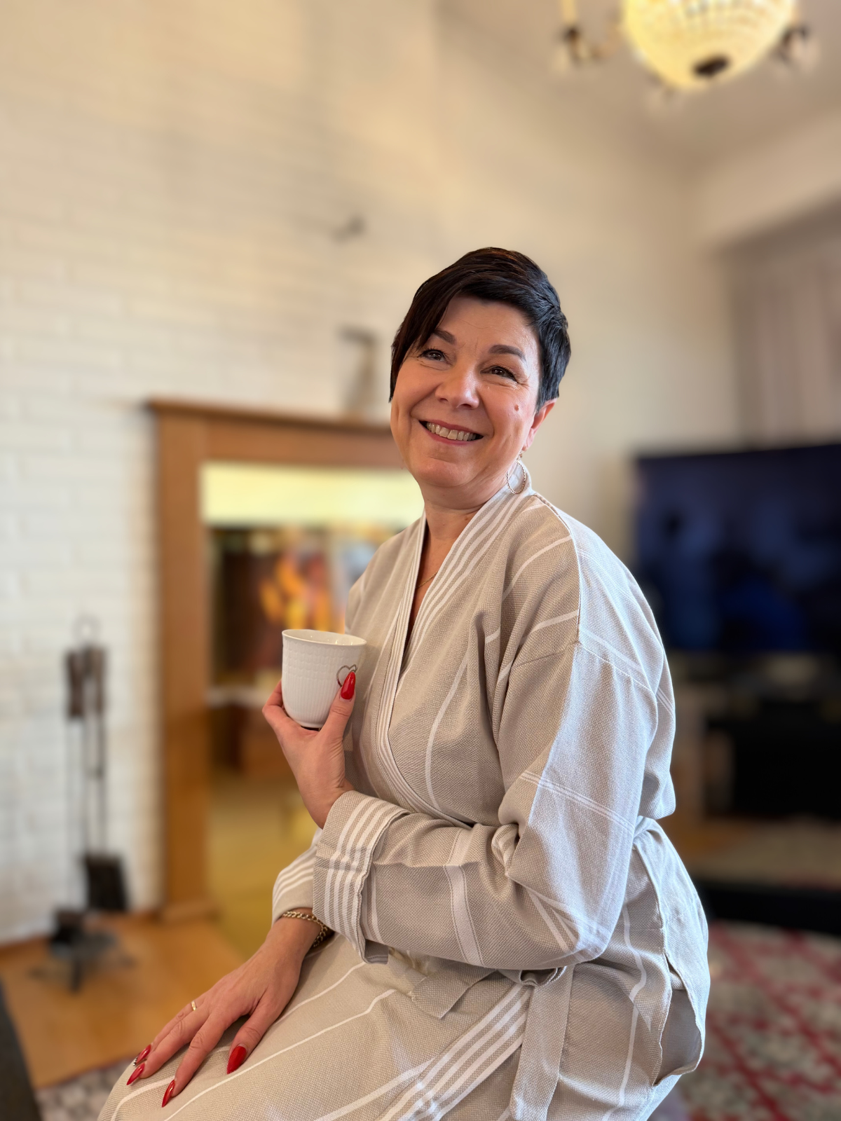Hamam kylpytakki menee pieneen tilaan ja on siksi loistava vaihtoehto myös reissuun mukaan!
