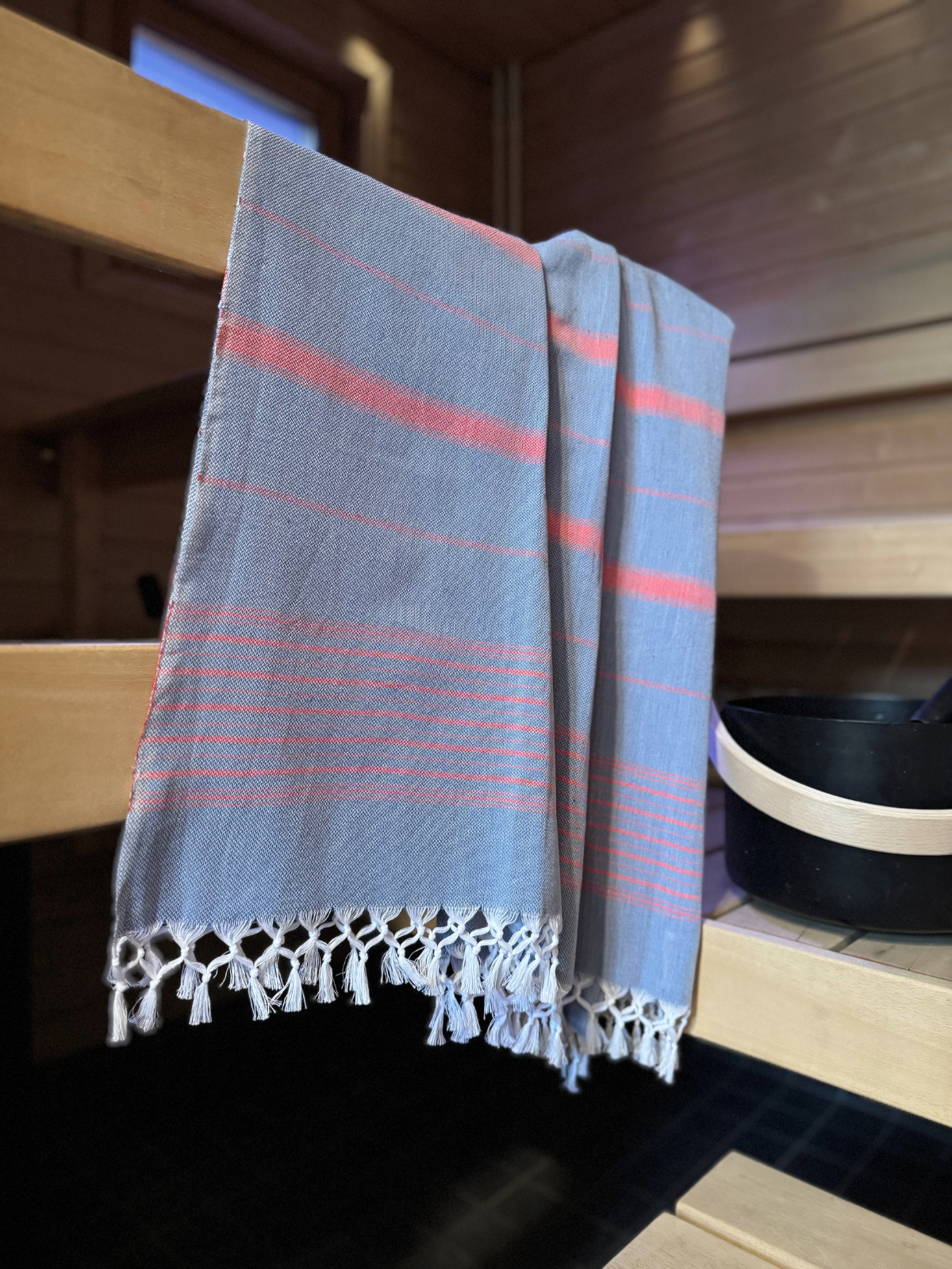 Raidallinen Hamam -pyyhe herkullisessa värissä! Aito Hamam pyyhe kuivaa hyvin, kuivuu nopeasti ja menee pieneen tilaan.