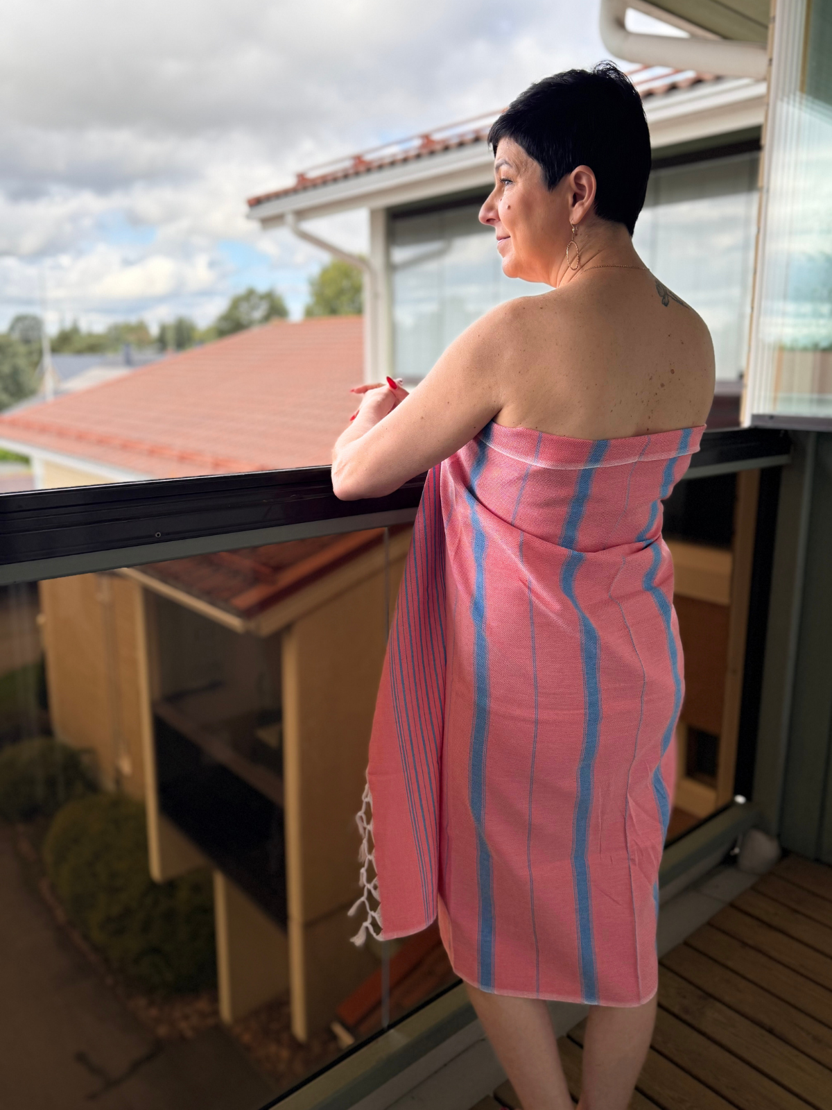 Hamam pyyhe menee pieneen tilaan ja on siksi loistava vaihtoehto myös rannalle, matkalle, kuntosalireppuun, laudeliinaksi, pöytäliinaksi, hartiahuiviksi, sohvan suojaksi, mielikuvitus vain rajana.