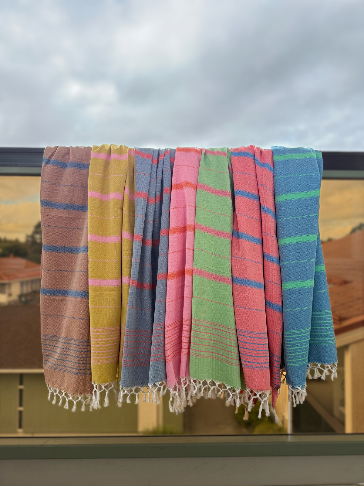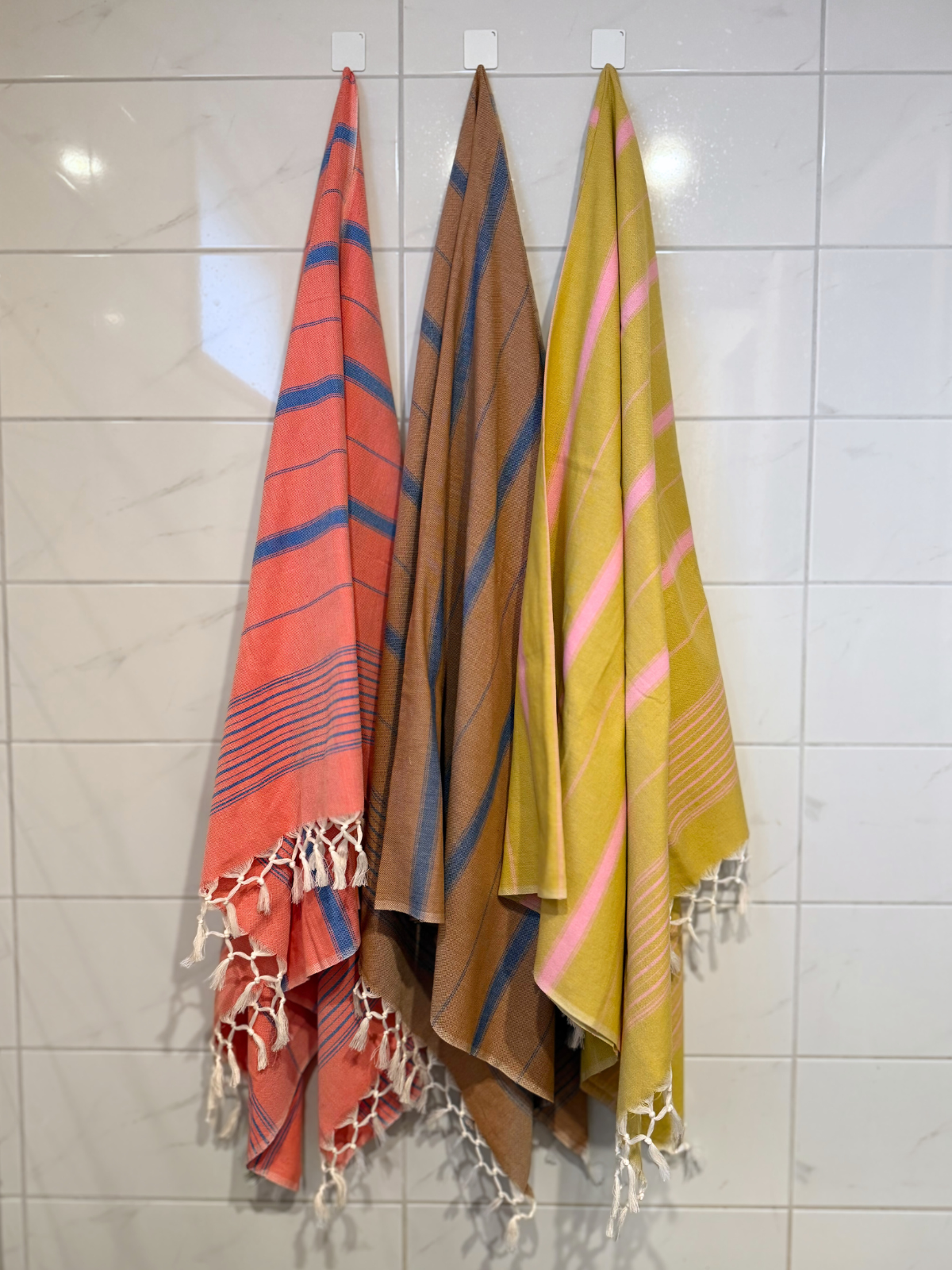 Raidallinen Hamam -pyyhe herkullisessa värissä! Aito Hamam pyyhe kuivaa hyvin, kuivuu nopeasti ja menee pieneen tilaan.