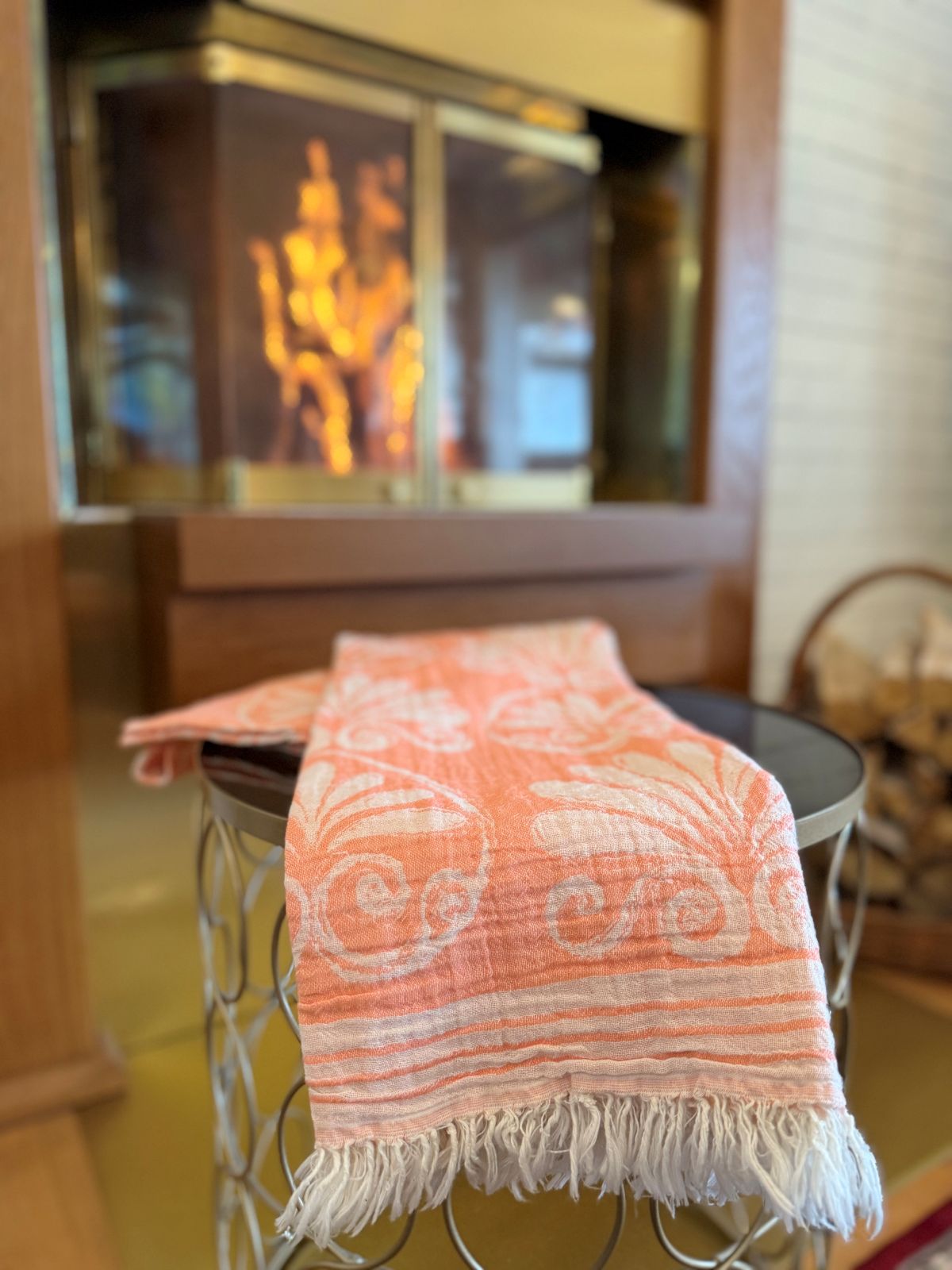 Kreikkalainen pyyhe Lootuskukka koralli puuvilla 90x180cm