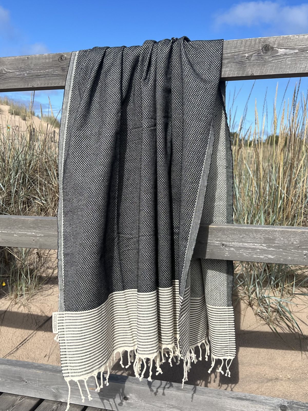 Kreikkalainen pyyhe Timantti musta puuvilla 100x180cm