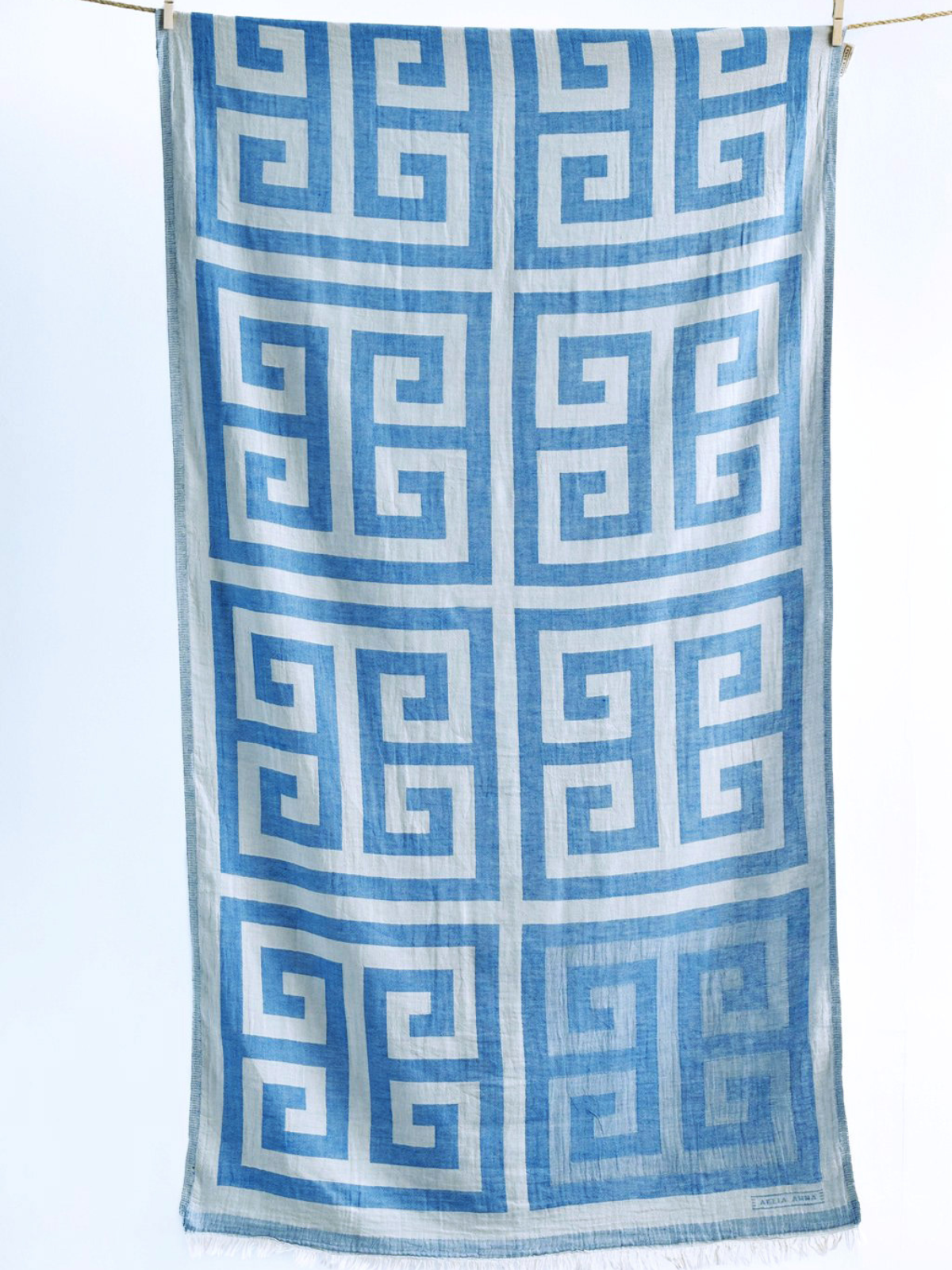 Kreikkalainen pyyhe Meander sininen puuvilla 90x180cm