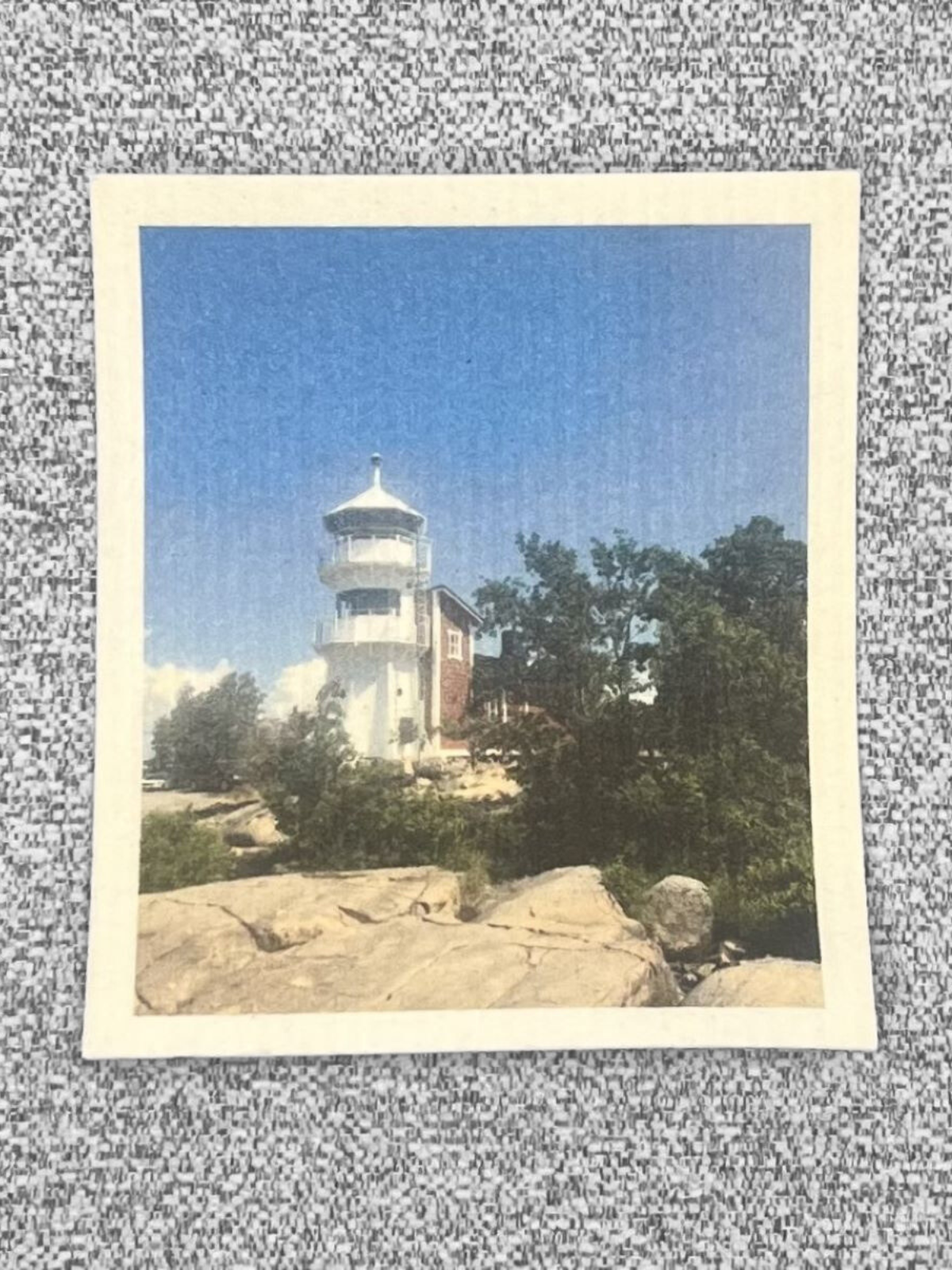 Laadukas tiskiliina Porin Kallon Majakasta. Ekologinen ja Suomessa painettu tiskiliina.